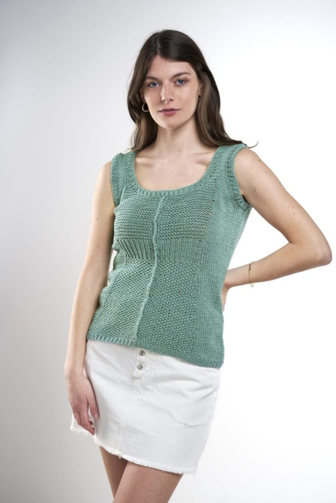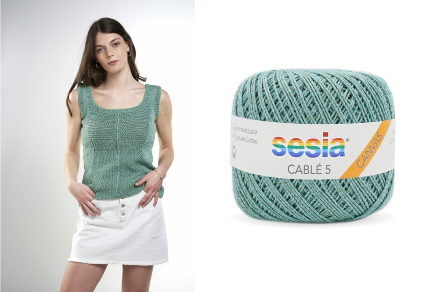 Un modello semplice ma ricco di luce, realizzato con il filato Cablè 5 CANVAS. Versatile e senza tempo, può essere indossato in primavera come sottogiacca o in estate come fresca canotta.