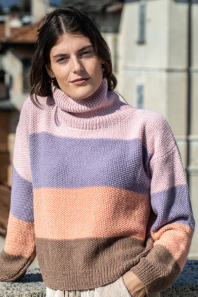 Un mix delicato di colori per questo capo in Baby Alpaca, dalla vestibilità perfetta e dal sapore sofisticato e chic.